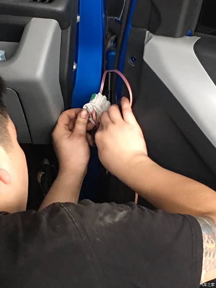 1、从门板拉线到仪表台是一个不容易操作的工程,穿线没有空间。(解决方法:在仪表台到门板的电线是对插形式,有多余的电线针孔,可以通过购买插头解决。而我是采用另一种:打孔穿线,因为这个对插头是有空间可以打孔。电线建议采用50芯,太大更不好操作。)