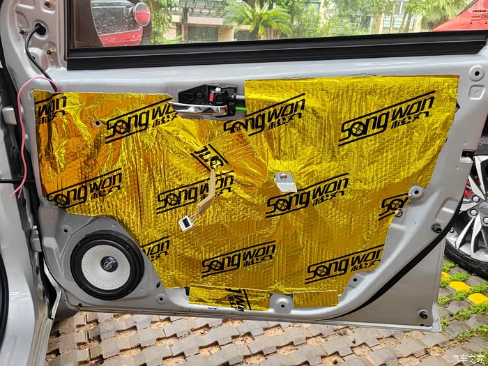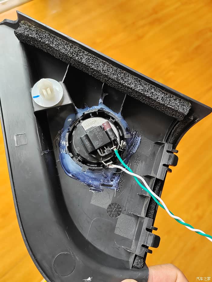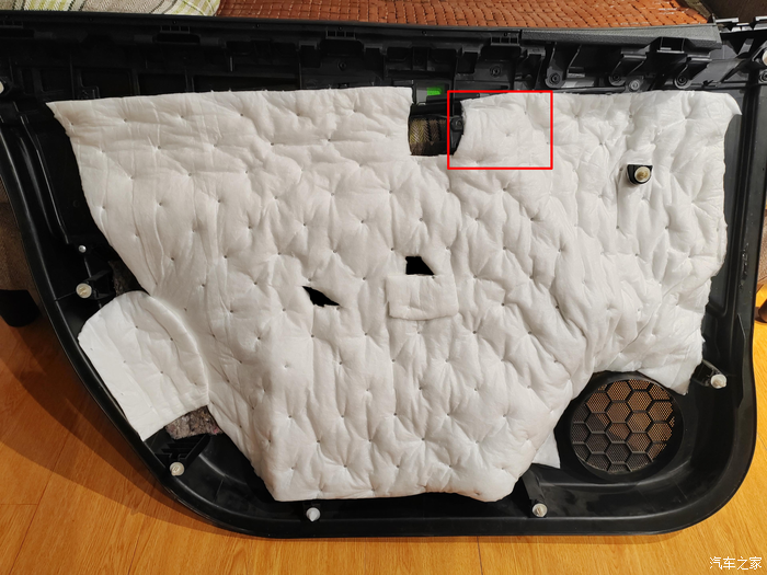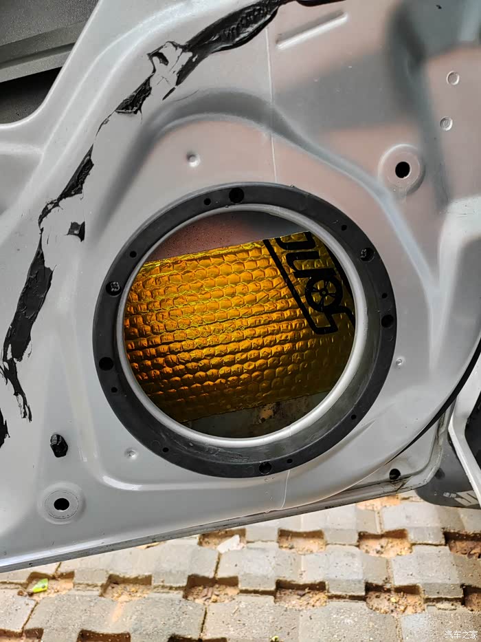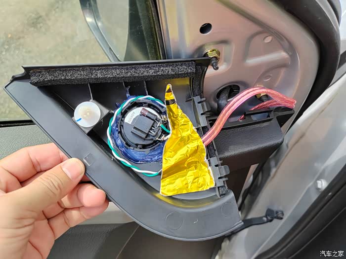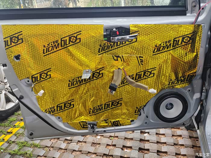 装好喇叭,并贴上止震板。驾驶侧。