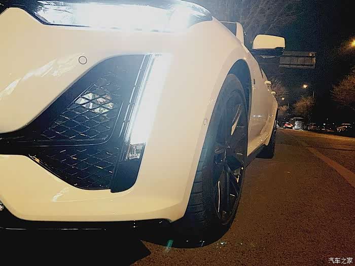 先看正脸,有高人说,看人先看眼,看车先看灯(这个高人就是我)我们先来品品他的大灯。全LED大灯,炯炯有神,凌厉十足,配合帅气的垂直日行灯,直接迷倒了我。当我直视它的时候,家族式的垂直灯光看上去像极了温柔而坚定的眼神…熏黑中网搭配一个U型仿凯迪标志盾形的镀铬条,十分到位,比单纯的熏黑中网更加吸引人,下方硕大的进气格栅,凸显了它的运动风格。