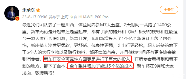 5亿重金投入,AITO问界新M7九月上市,安全性能大升级