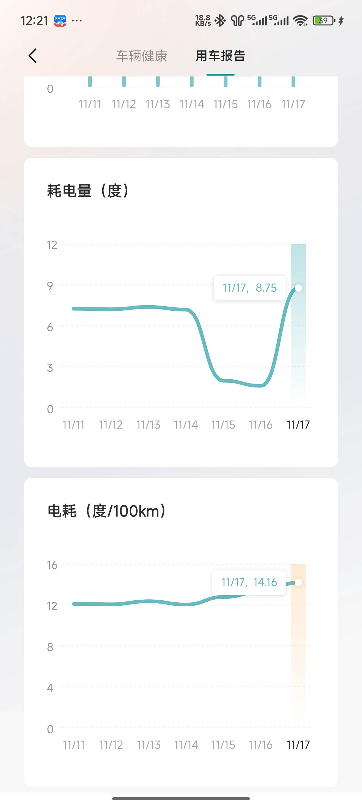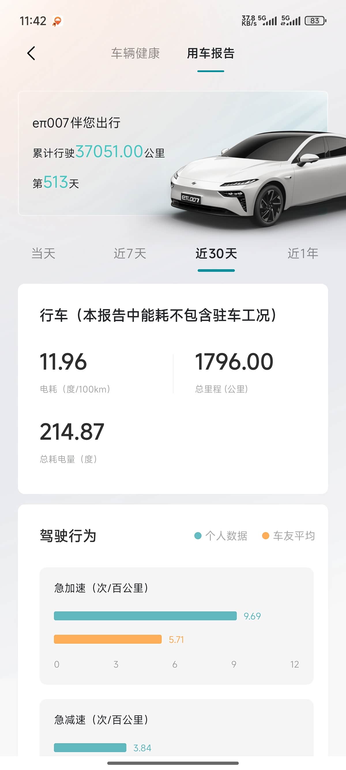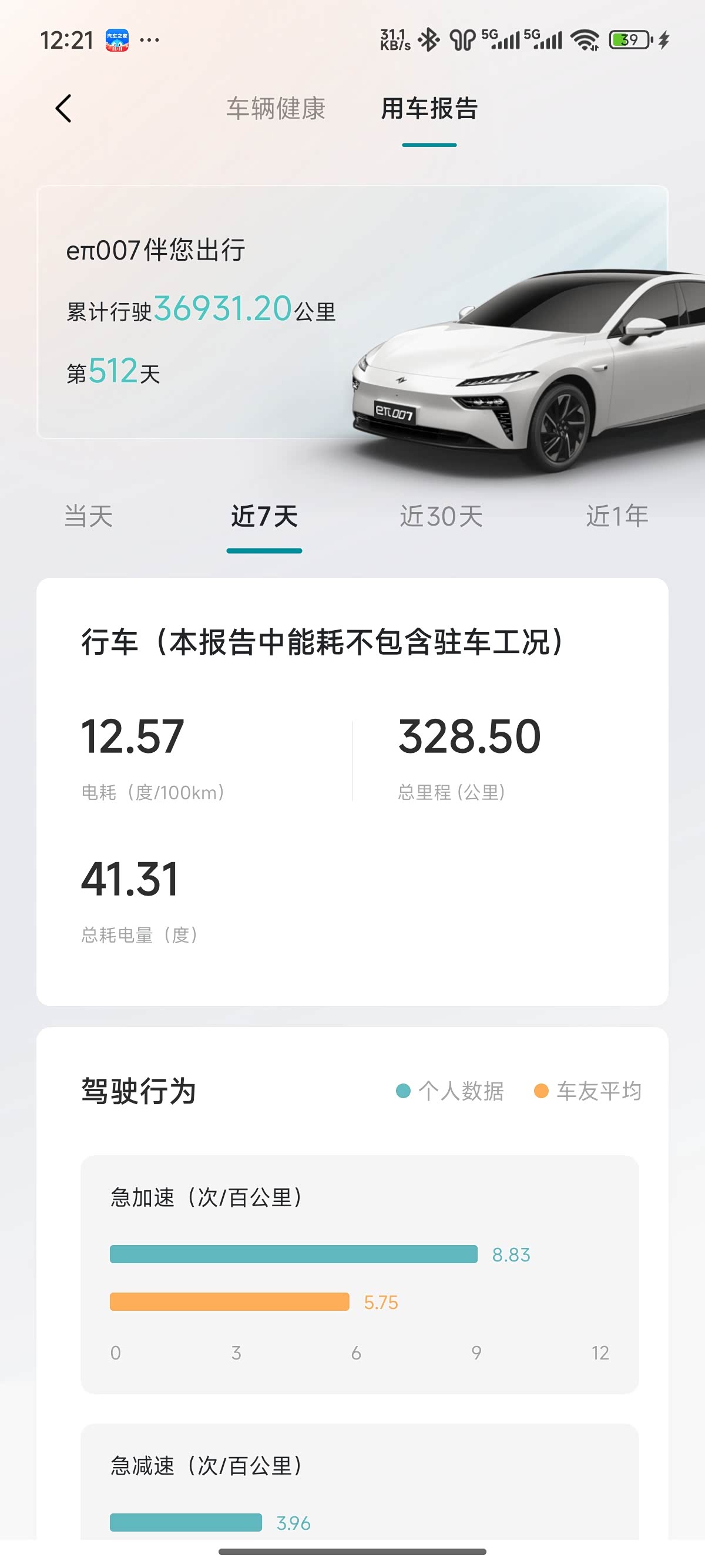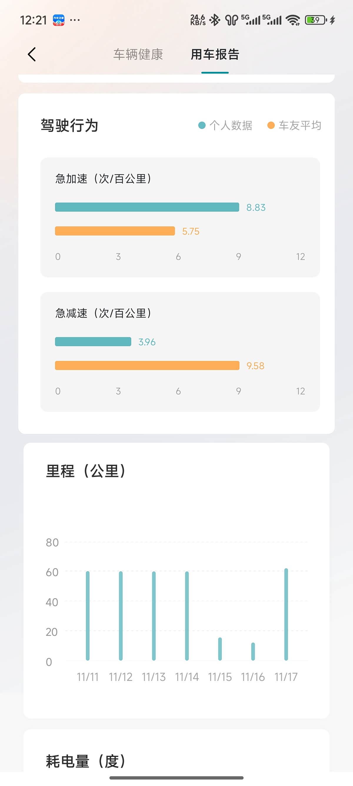 依旧是通勤用车外加周末出游,每周里程在400km左右,一个月不超过2000km,然后路况的话都是城市路况,快速路占比比较大。环境的话武汉确实不太冷,平均温度都在十来度,对能耗比较友好。