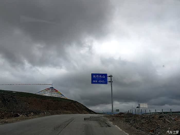 10:30路过长石头山垭口,海拔4542米,这里每年冬天都会遇到风雪困车救援情况。这里的风云依旧肆虐,风马旗在山梁上呼呼作响,一直下到平缓地带还没有改变。