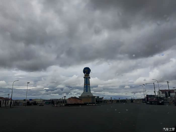 不久到达县城大路口。云层依旧浓厚,广场上矗立着球状的标志性建筑。继续沿着国道向前,路边的河道逐渐宽广,星星海就在前方。