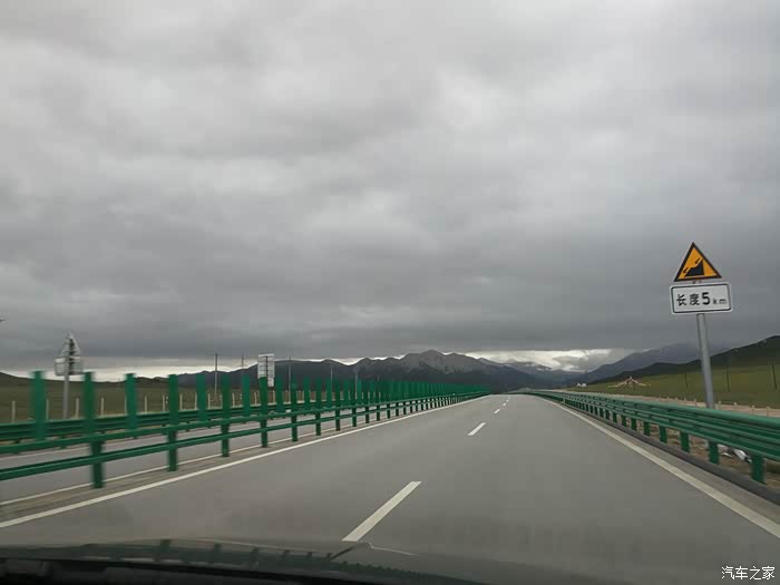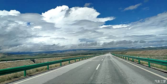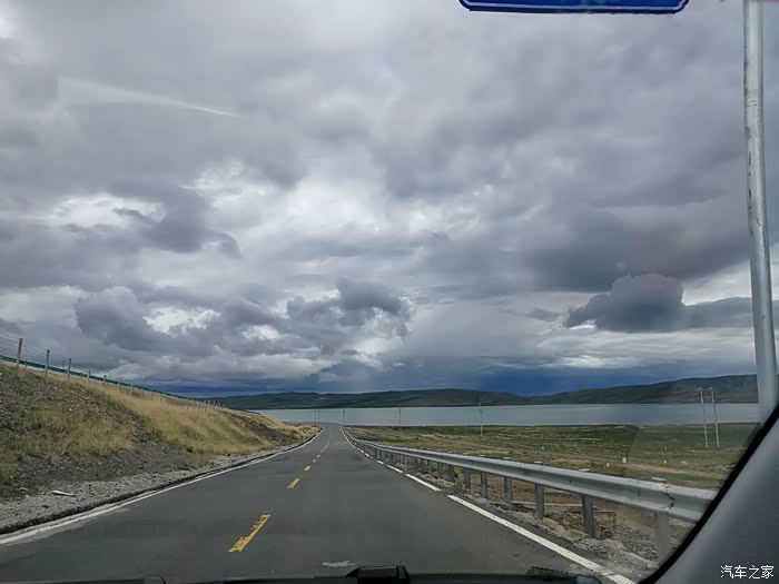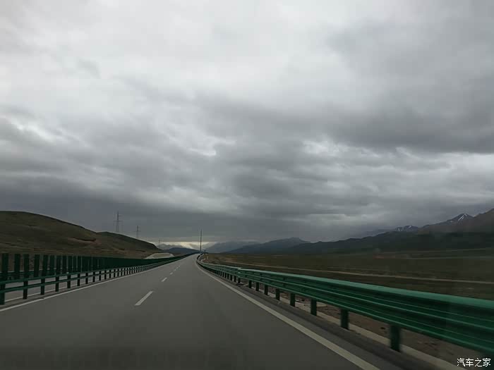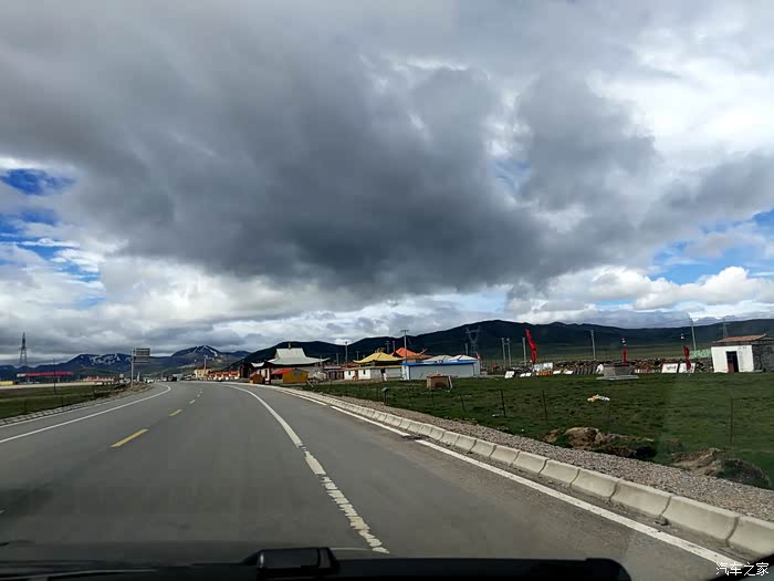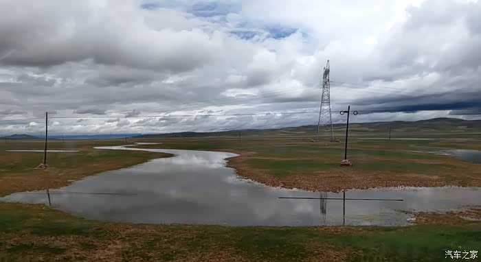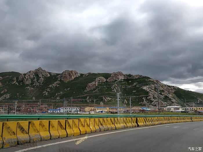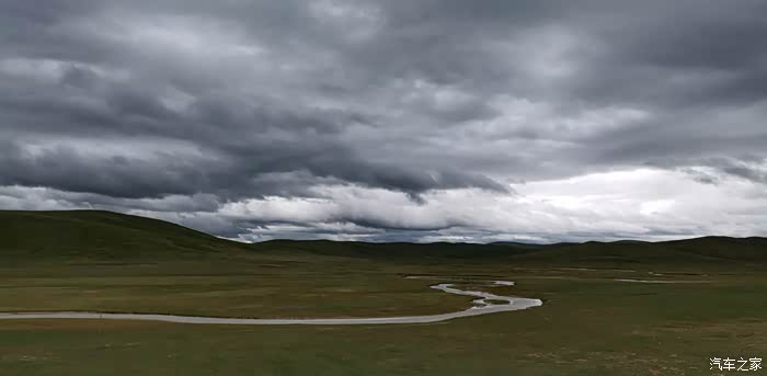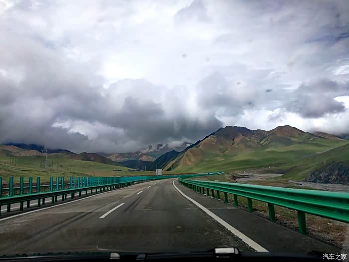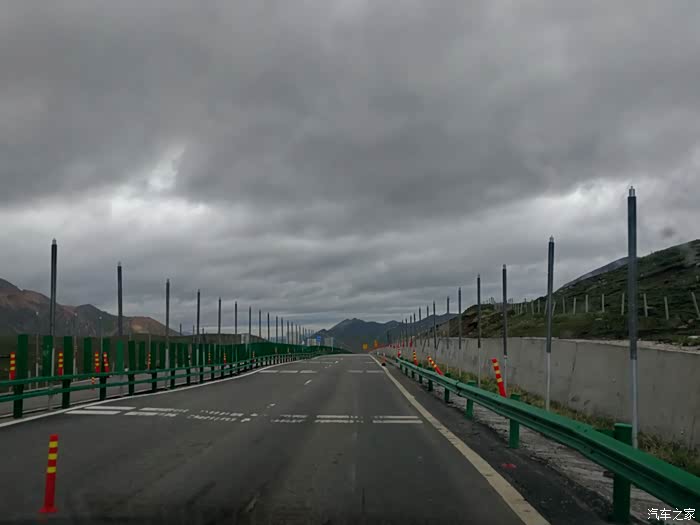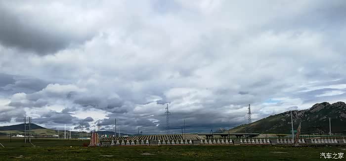 玛多县的天气是多变的,20分钟后继续赶路。路过花石峡后,在立交桥处就看到了远处的云墙,我们又要面对不断变化的天气,好在能见度极佳,将近2000米的落差行程中,风云变幻尽收眼底。