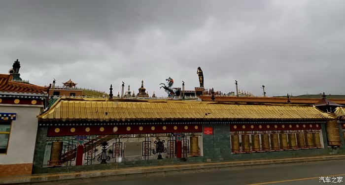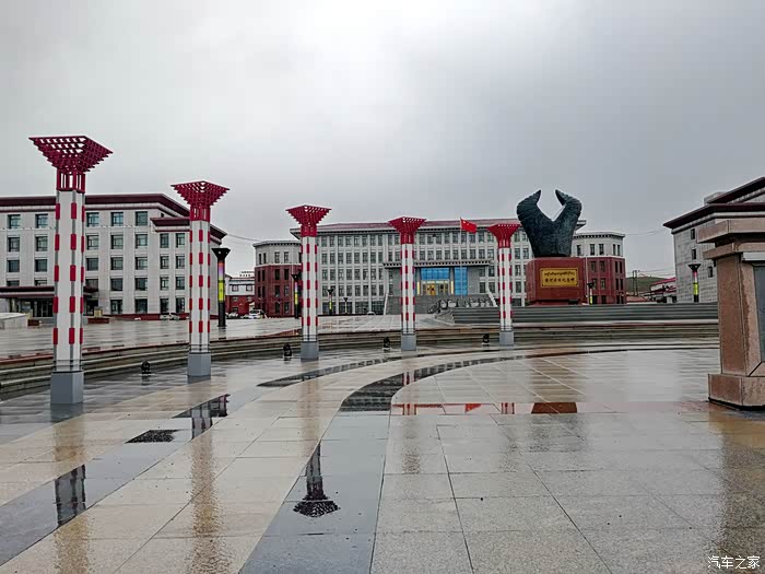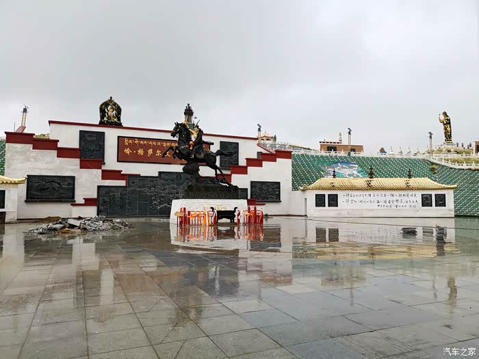 天空乌云密布,云开日出的时光不会出现了,这时拐到小路上的车辆极少。进入小路,开了一公里不到,这种天气下兴致全无,拍了两张照片就回程去县城的格萨尔王广场。