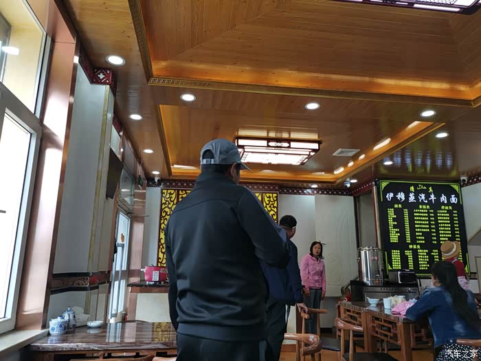 拉面馆装修还不错,进门老板就说扫码,我很快扫码就坐,还有藏民提出疑问,老板回答那就请出去。这是我们出行以来,为了吃饭扫的第一个健康码,时至今日疫情再起,感觉非常必要!从下面的照片中,丝毫看不出这是西北花石峡小镇的拉面馆,木板吊顶,窗明几净,明码标价,汽锅拉面。可惜没有留下拉面照片,一路吃过来,拉面为主,几近麻木。
