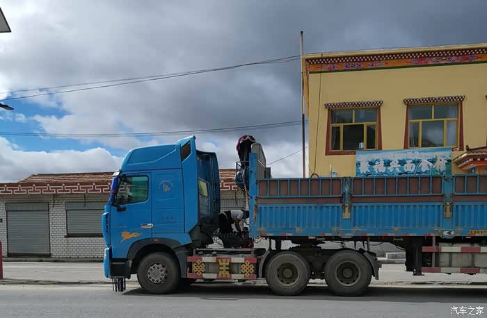 回到公路边,正好看到两位壮硕的藏族妇女爬上大型货车拿行李,那流畅的动作令人敬佩,想必内地已经很少有妇女做此类工作了。