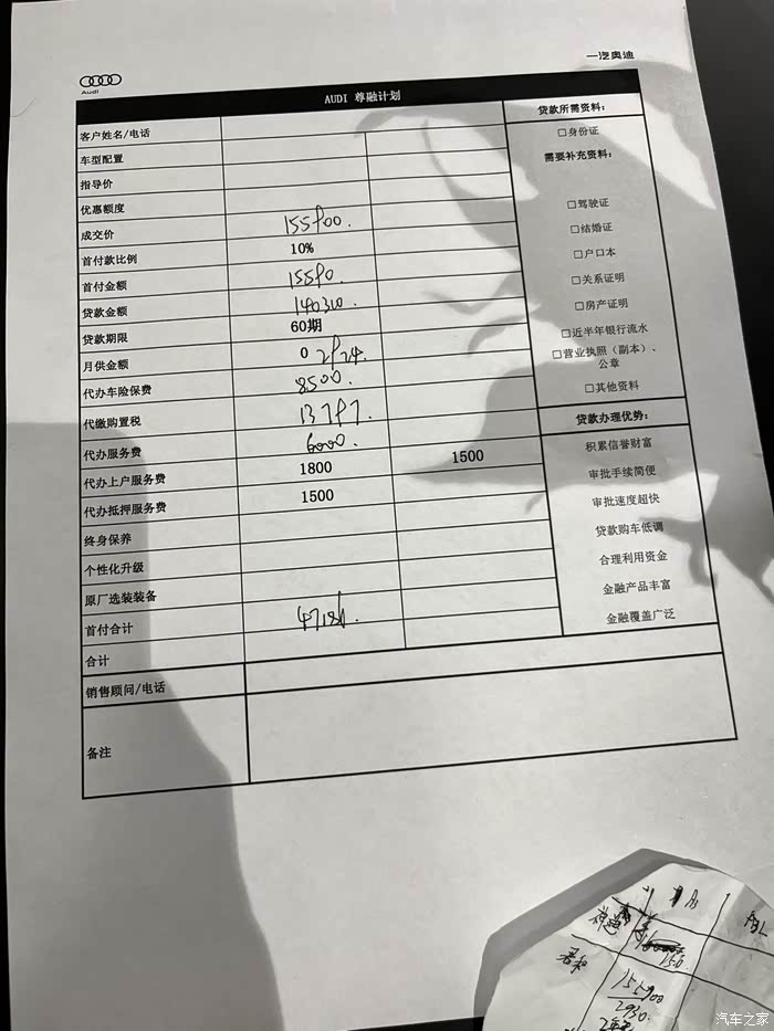 去了好几家店,裸车都是155900,打算买奥迪中配尊享,不会算了,咋往下砍啊,落地要18万左右,大家都是多少啊