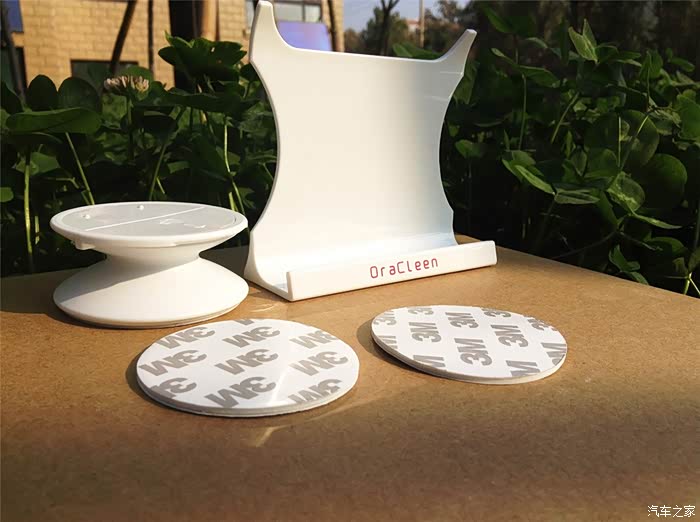 支架也很简单,应该是亚克力材质,白色的外观挺洁净的,前部印有oracleen的红色logo,算是一抹亮色。支架是组盒式的,通过双面胶粘贴到封面上的。而且还另配了两片3M贴纸,很给力哦。