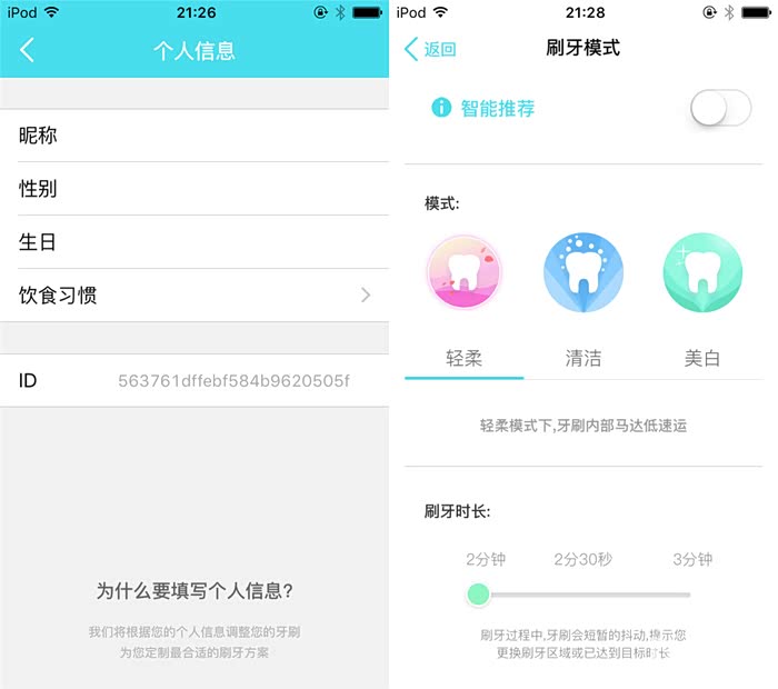 在设置界面还可以设置个人信息,会根据个人信息定制刷牙方案。
