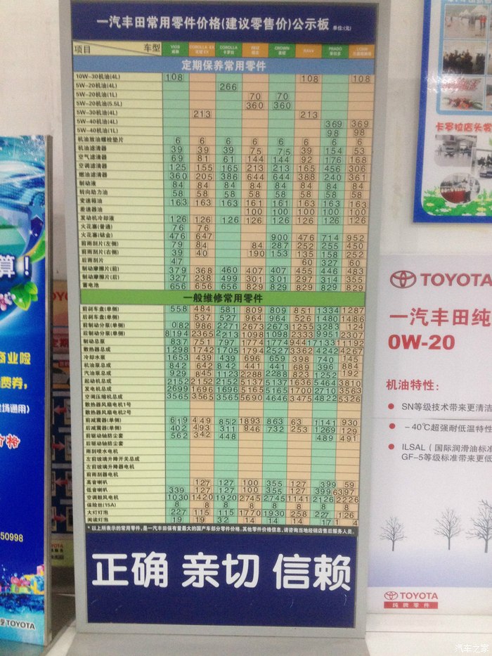 顺便拍了下配件价格表