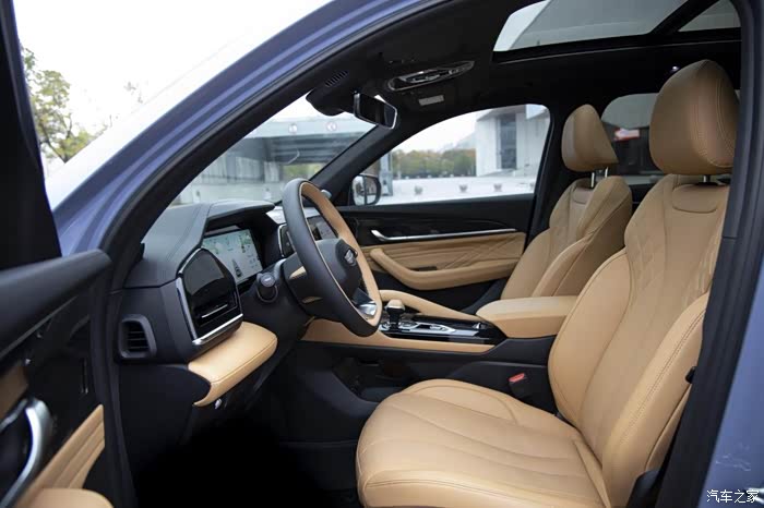 焦糖棕的真皮座椅是真的很好看!坐上去柔软舒适,包裹感很好,试驾乘坐的时间也不短,全程乘坐体验都还不错,很舒服。因为前排基本都有加热、通风功能,试驾的时候我还试了一下座椅的加热功能,反应速度很快,捉着暖烘烘的,哈哈,不错不错。