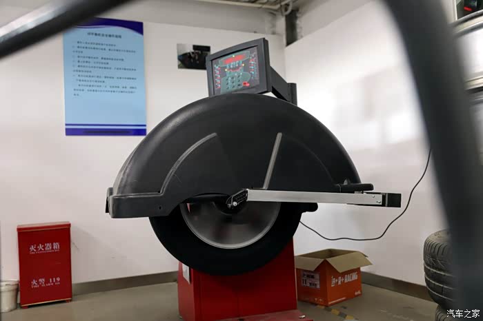 充气过后,要进行轮圈的动平衡效验。在这里也为大家分享一下,如果我们日常驾驶的时候发现方向跑偏或方向盘抖动严重,通常就是轮圈的动平衡出现了问题。当然,跟四轮定位也有关系。