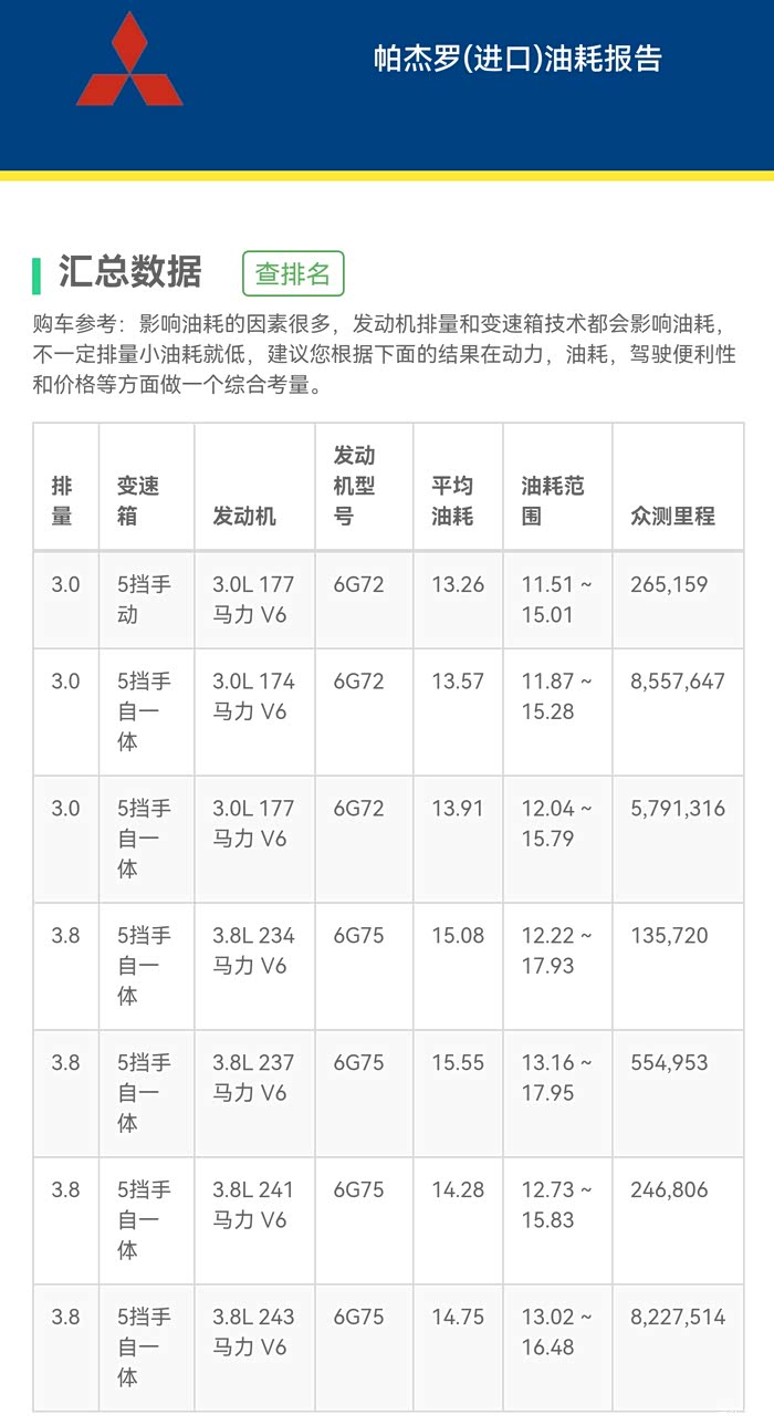 7、三菱帕杰罗3.0小熊油耗13.5,3.8 15