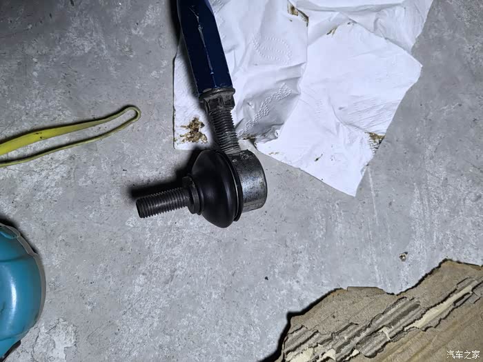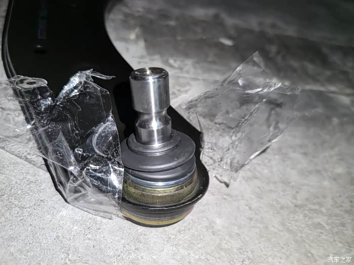 16、就是这个球头差异,马5的这个下摆臂其实球头跟另外2个胶套是可以单独更换的。拆下原摆臂,发现其实胶套虽然有小裂纹,但还没有达到损坏更换的程度,我已经把旧的摆臂放起来,以后换个大的胶套就可以继续用。