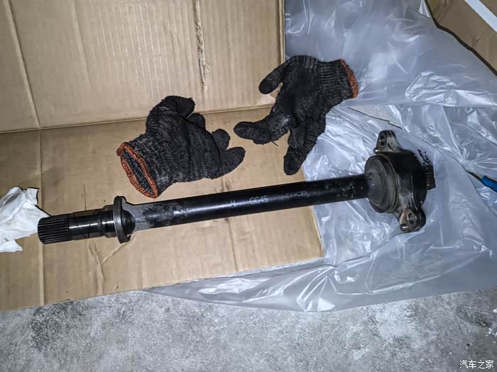 25、半轴跟过桥轴合体,然后就开始往回装了。之后由于在车底下操作,没有拍到照片。拆的过程中会漏点变速箱油,大概不到半升,检查了油位,还在中线的,就没有进行补充。