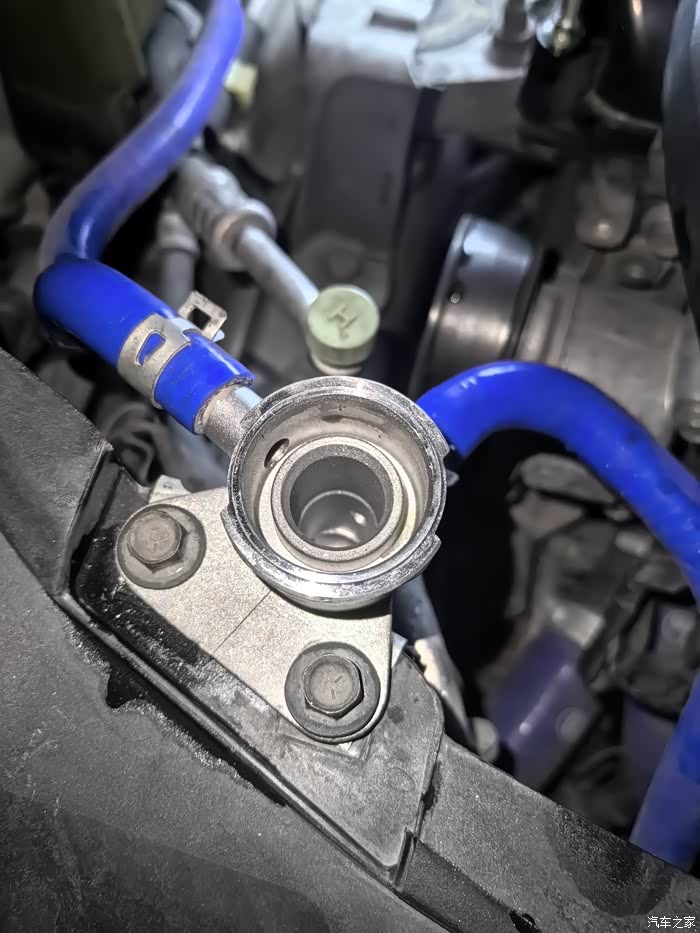 1、之前的水箱加水口底座是塑料的,副厂的,用了一两年,发现口子已经变形,成椭圆形了,于是就更换铝合金的,希望到车子报废都不会坏。