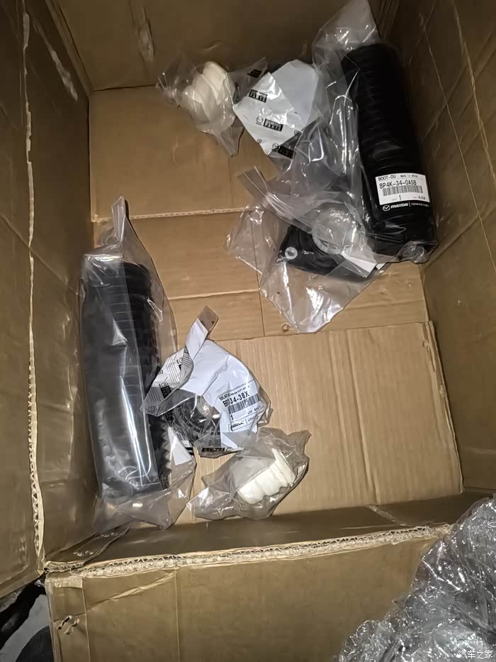 22、这是帮车友购买的前减震顶胶、平面轴承、缓冲胶跟防尘套。最后这套东西他也用不上了,我就留着自己用了,可以换到前减震上。