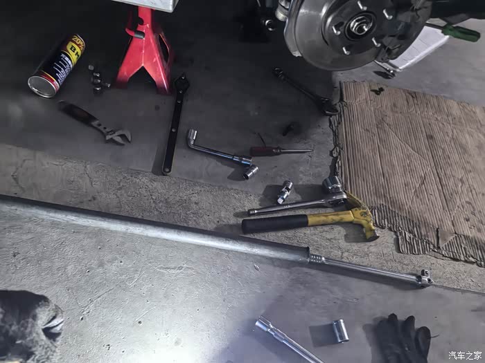 23、拆半轴最难的就是这个大螺丝了,自己的工具不够,本来是想找修理厂的师傅帮忙换的,结果师傅说年底太忙,叫我自己借工具回去换,就借了根大水管。