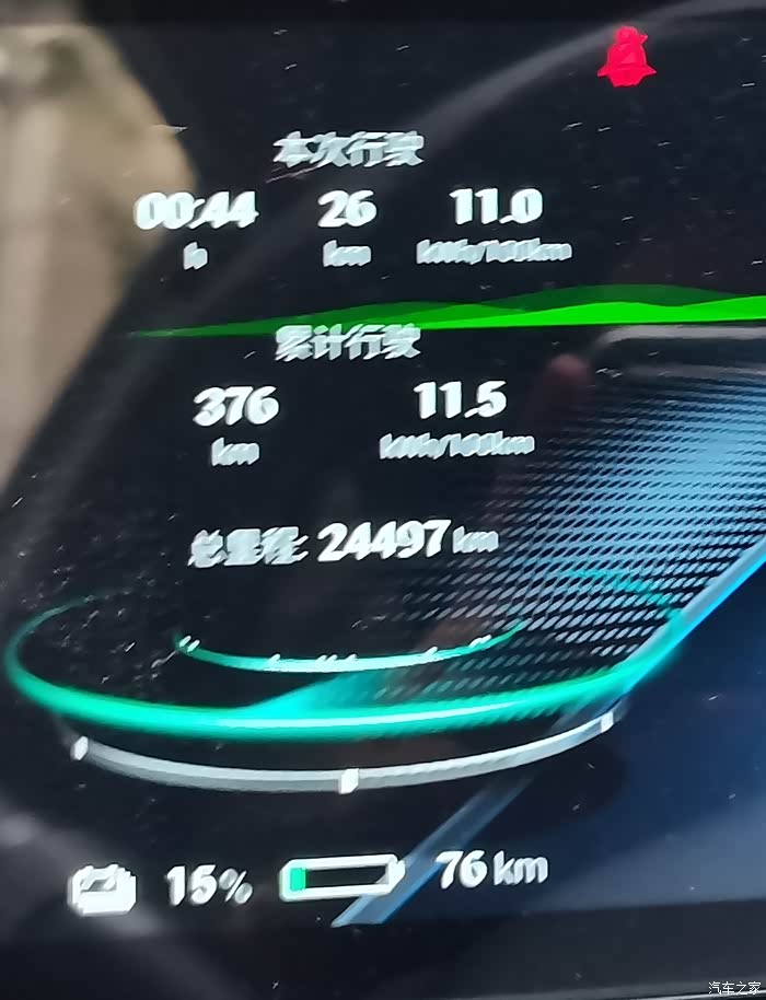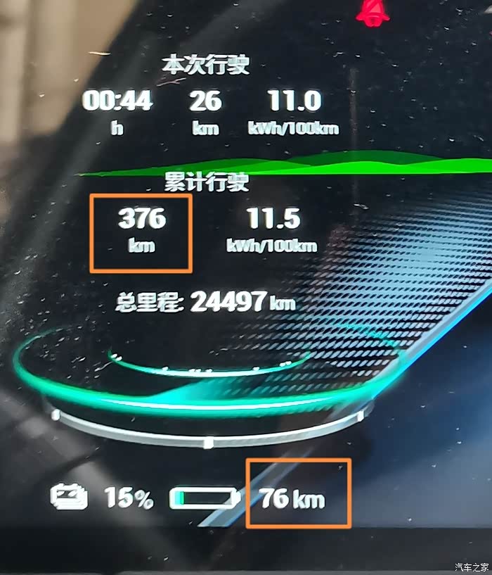 第一次,七天时间,充一次电,连续开了376公里,感觉电动汽车的续航在这个季节还是非常扎实的。