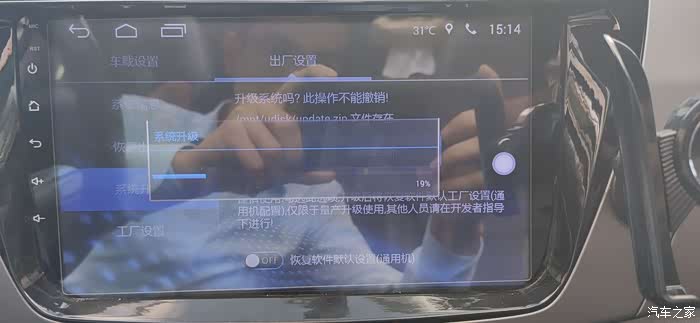确认无误后找到车载设置或系统设置里面,出厂设置然后系统升级...