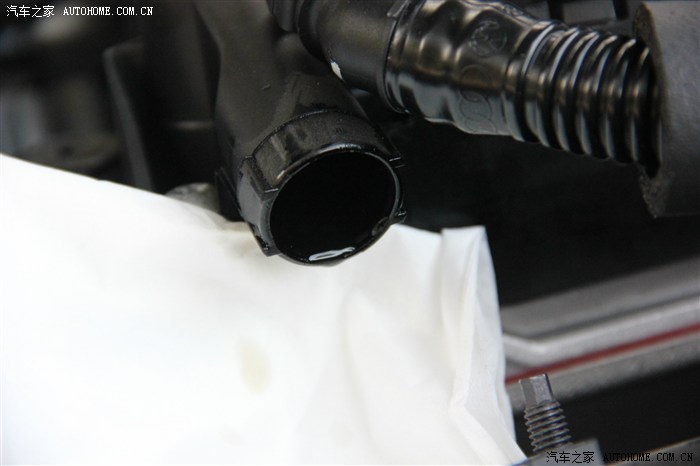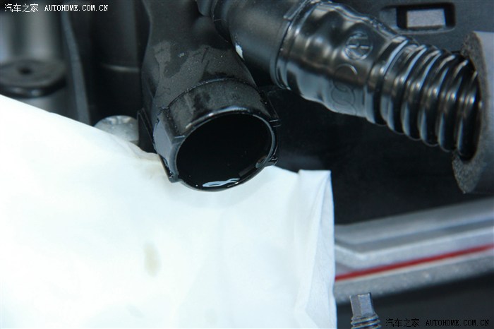 波纹管拔开,一秒内一整滴机油马上滴落。这次应该说是直接流淌出来,连挂壁的缓冲都没了。