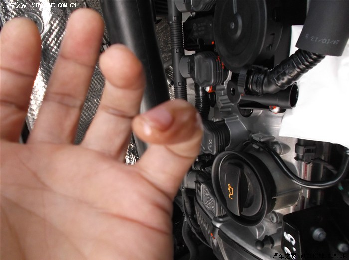 手指上的机油痕迹。评估多少很简单:想象成手指伤到时流的血液,整个指甲盖周围被覆盖还往下淌,这个量大家都懂的。而且这是刚拔开多的已经流下后管内的残留。
