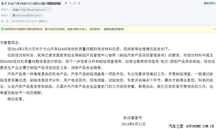 大众中国客诉邮箱:service@volkswagen.com.cn