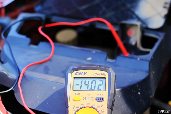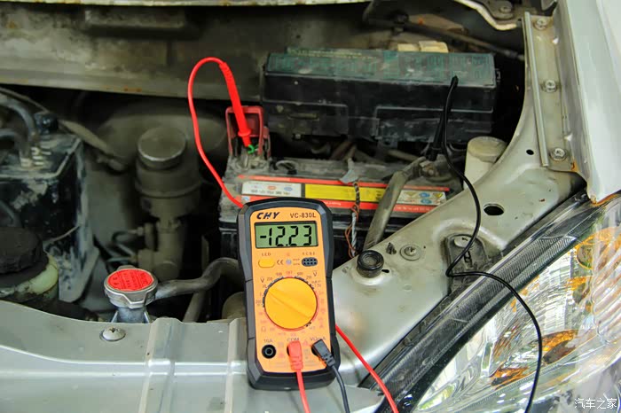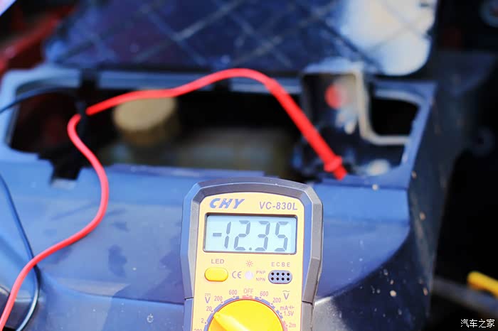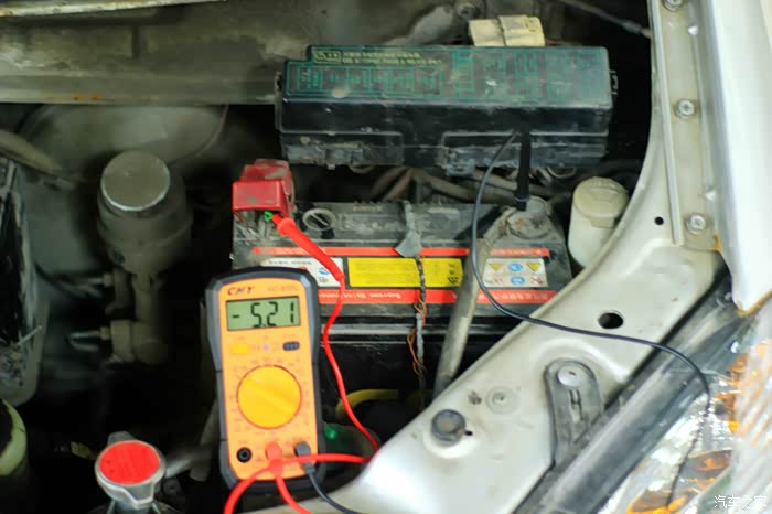 第三步就是测试一下车辆电瓶电压,这张图可能看不清楚车辆电瓶的电压,请看下张。
