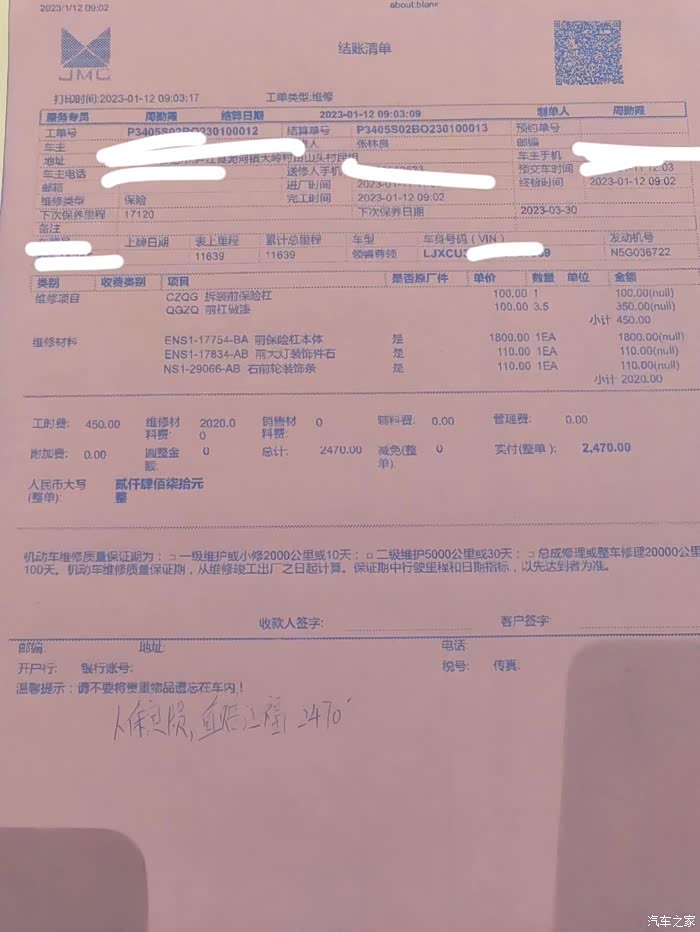 心疼,去江福售后维修的,从接待到维修,给点个赞,已经修好了,又恢复了往日的风采。快过年了,大家一定要注意行车安全!