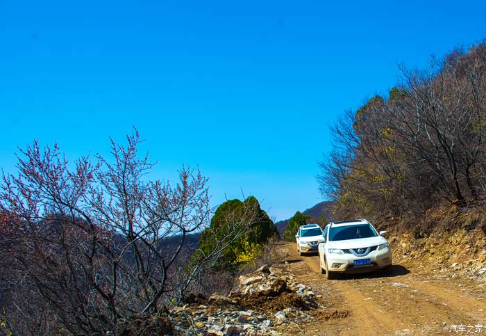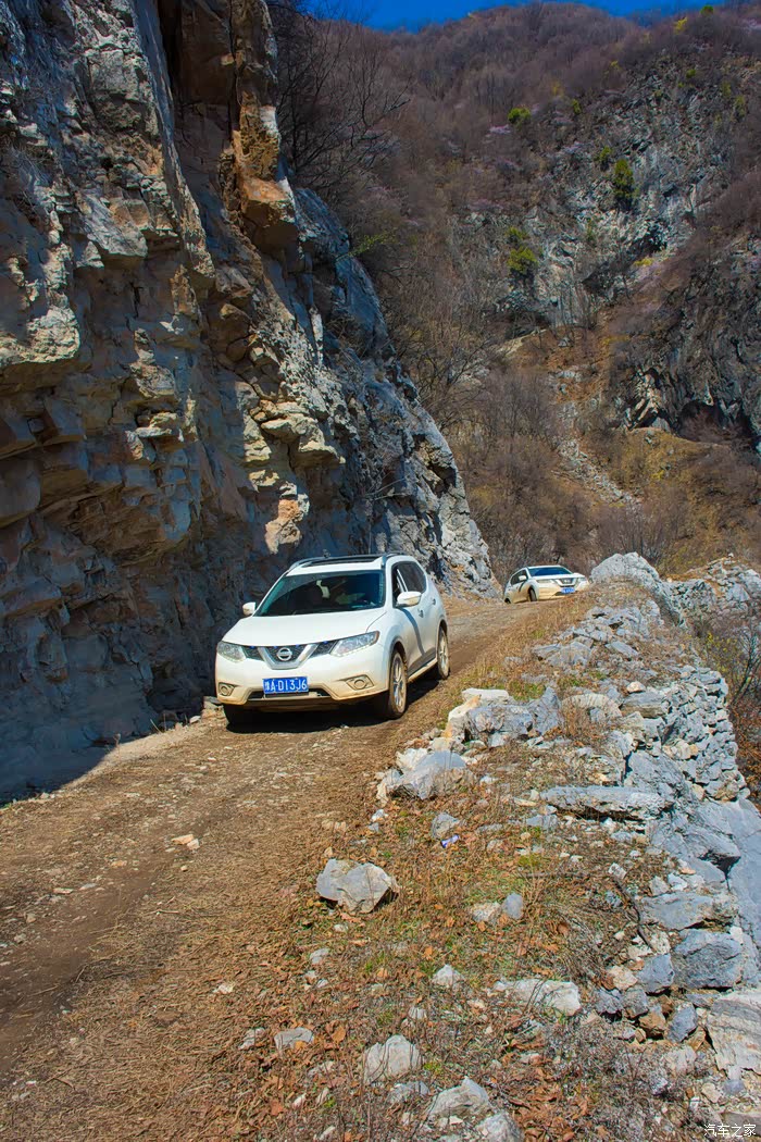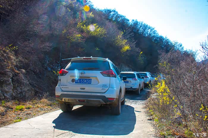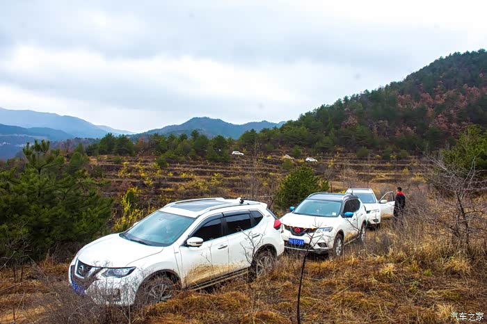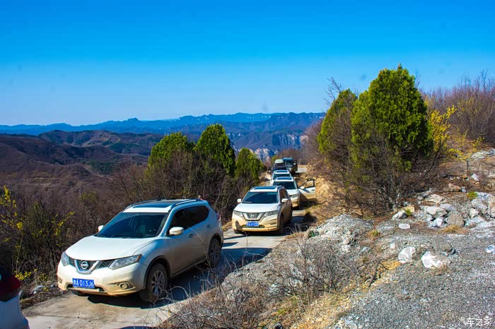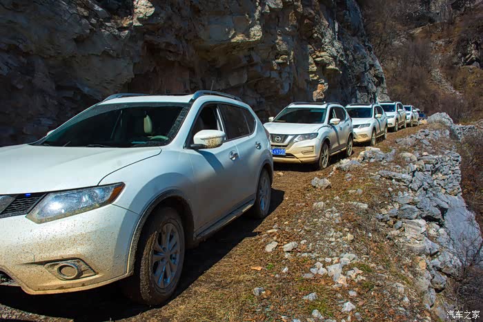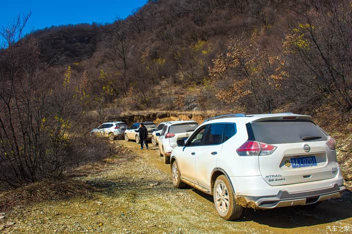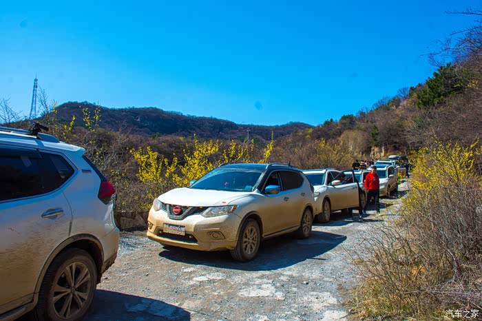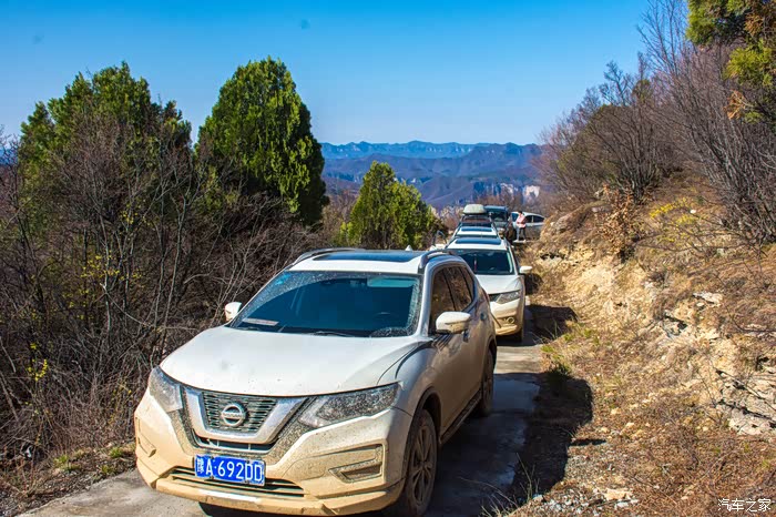 车友圈里一召集,一共有10辆车出行,到达山脚下时,有一辆车临时有事退出,最终9辆车走完全程。奇骏作为城市SUV,要再一次带我们去穿越这未知的区域。