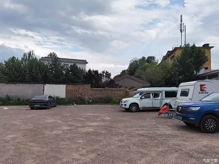 这是我今晚的驻车地,已经停了不少的床车和房车车友,这个驻车地的边上就有一个卫生间,但是晚上十点以后是关门的,用水也比较方便。