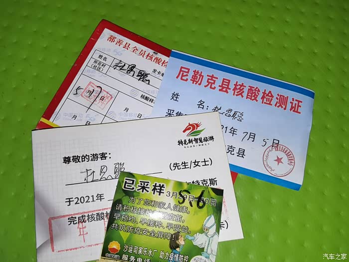 你看,稍微整理一下单据,还是找出来不少这段时间在不同地方做的核酸的单据,这还不包括很多没有给单据的地方,也进新疆这么长的时间了,基本上也适应这样的管理了,我觉得停安全,挺放心的,没有什么不好的。