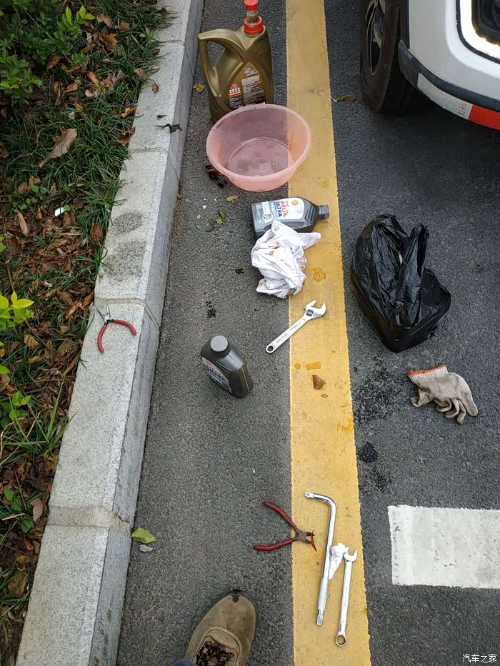 若想自己动手必须先把机滤搞定,因为就单折腾机滤我都搞了两次(接近2个小时)才攻克!因为空间小,机滤被服务站上的好紧,使不上劲!你先把机滤用工具搞松,然后就可以开始自己保养了!