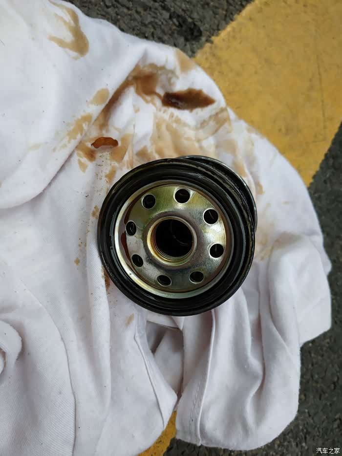 这是拆下来的机滤好多机油在上面呢
