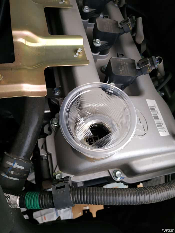 放完油来到机油加注口,我把防护套给弄起来了!