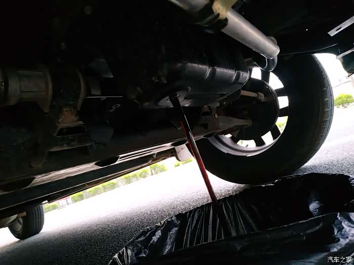 开始放废机油了,你看这机油清洁能力还是可以的,蛮脏的,看来机油是要经常换的!