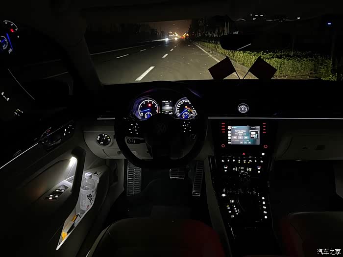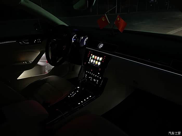 晚上的内饰效果(在中控台装车之前 我把全车按键已经送到朋友那里换白色灯珠了)