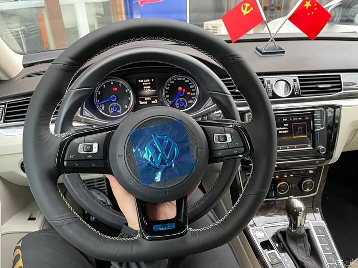 原来的方向盘还是不搭这个内饰 果断订了高R进口的方向盘 并包了Nappa皮