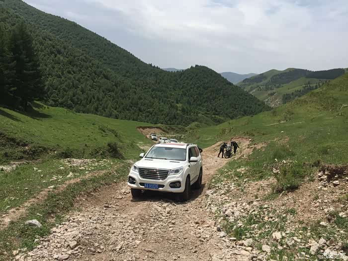 一开始就来个了一个小难度,后方的石头宽度有限,下车引导后通过。