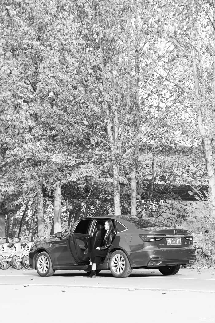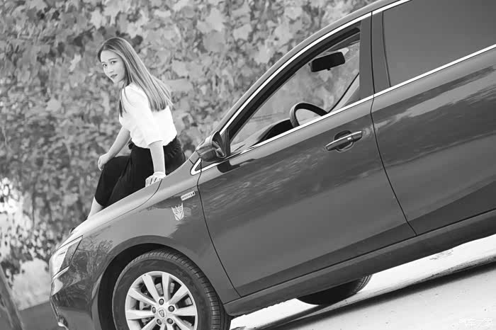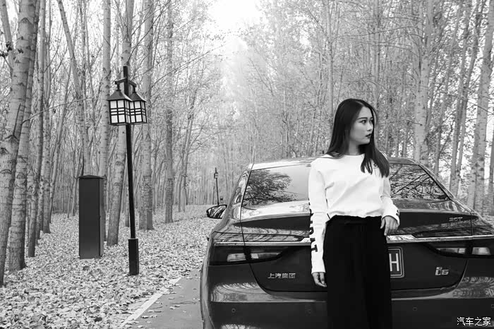 小姐姐是个挺活泼的女孩,第一眼看上去就感觉特别的青春有活力,而喜欢和他聊天三两句就能露出一个特别逗人的微笑,当然也是一个比较个性的女孩儿,这次的照片他要求拍成黑白颜色,虽然我学过一点点摄影,但是技术不是很精湛,这张照片整整拍了一下午,是从1000多照片中筛选出来的,我跟小姐姐算是半个好朋友吧,我们共同认识一个好朋友,然后慢慢也算熟悉了,等我开着荣威I6,我现在小姐姐身旁的时候,小姐姐一眼认出这是荣威,并对我说起他和荣威也有一段故事,原来他之前给荣威品牌做过快销员,也就是做车展的时候,给荣威品牌做礼仪接待等等,于是我们就聊起了这款车,首先我觉得小姐说的话让我感觉特受用,他告诉我,荣威这个品牌一直没有抄袭任何的轿车,一直以自己独特而且符合国人审美的观念造车,他做出来的车不能说特别艳丽,但却中规中矩,非常耐看,非常符合我们国人的审美,好吧,我服气了,能出这段话,看来也是对品牌做过研究的,这一点,我甘拜下风
