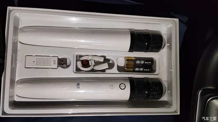 但是这个话筒有个小问题,那就是只有一个话筒,不能2个人同时K歌。如果带个萌妹子在副驾驶,她唱我听着,我唱她听着,总觉得少点儿味道!如果能有2个话筒,来个合唱,岂不更美?