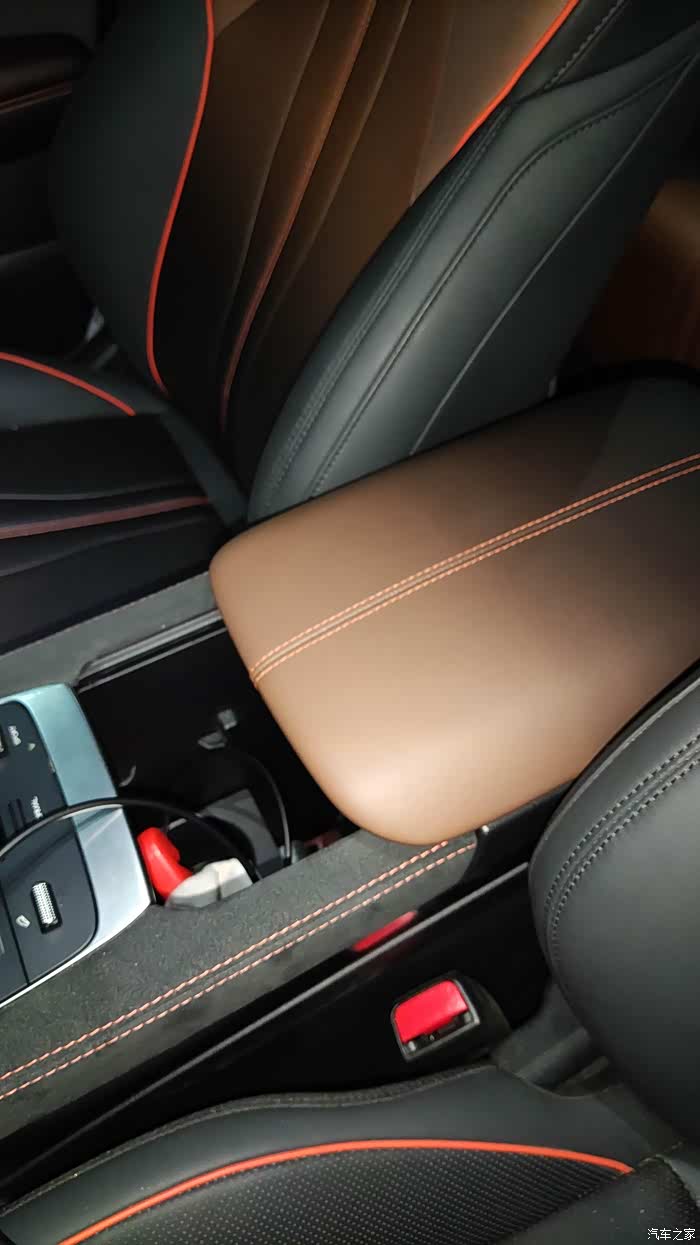 原厂的话筒,充电底座,就在这中间储物盒里面