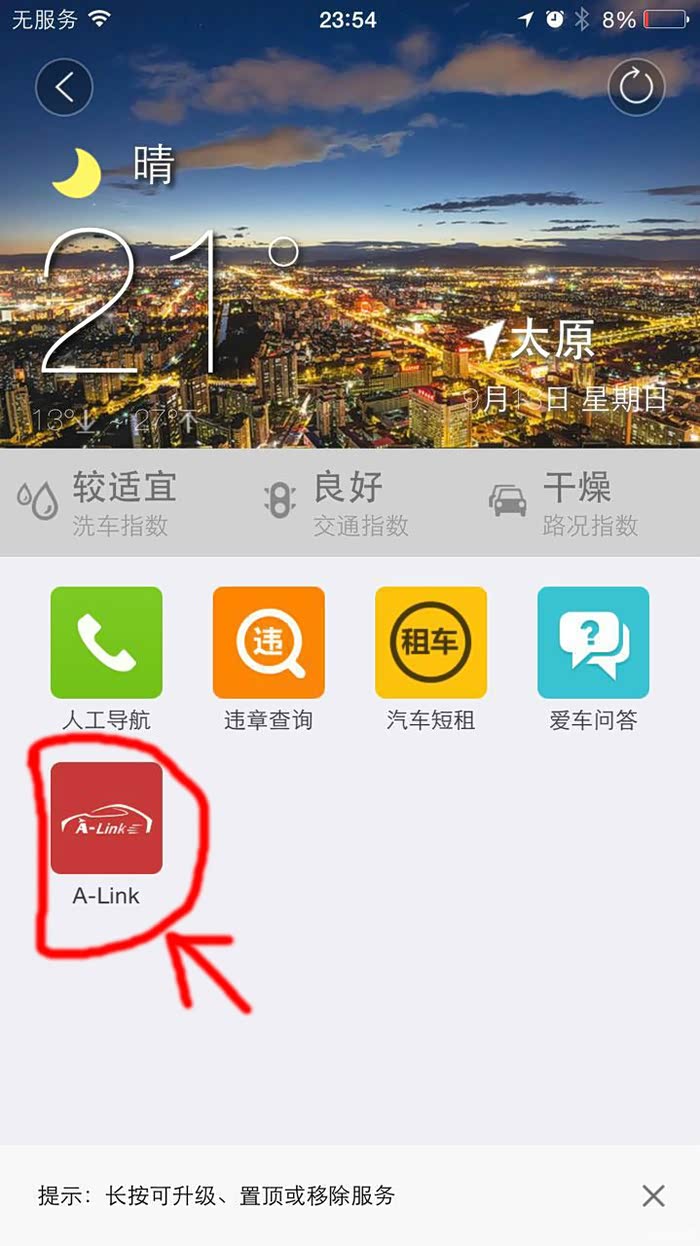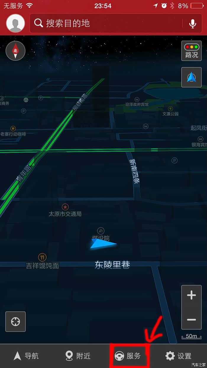 首先进入高德导航(不是高德地图,暂时不支持),点选服务按钮