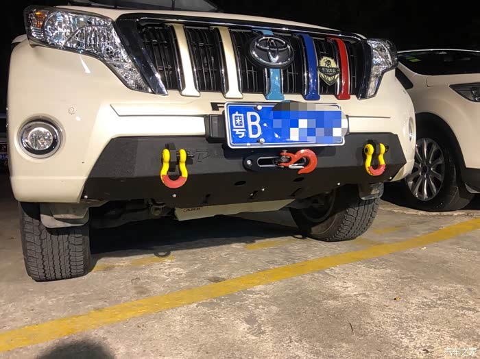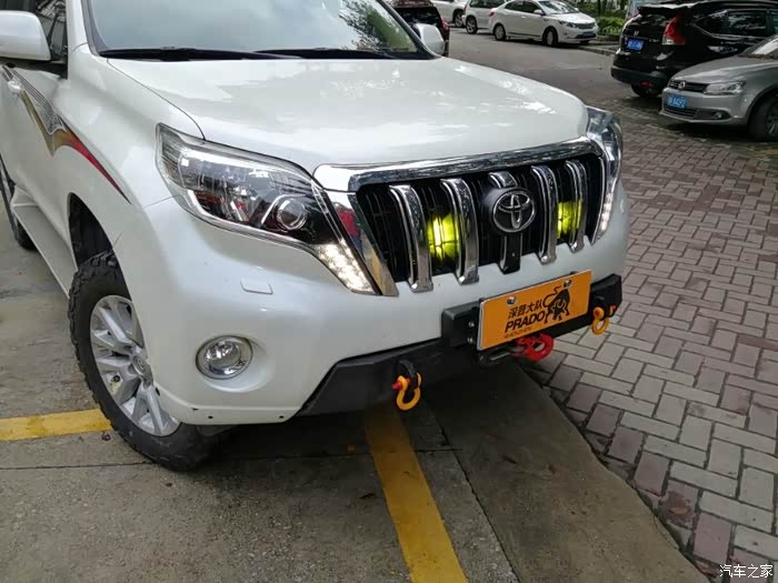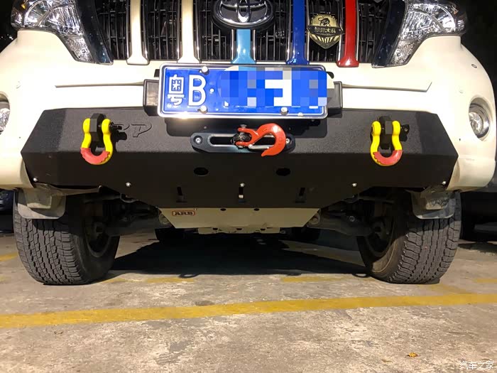 从前面看还是很和谐的,大家可以看到,这个还带了一个绞盘导口,原来普拉多的绞盘导口内藏,总要翻车牌,有翻牌功能嘛,很容易被叔叔发现的,一但给你扣个12分就完了。。。绞盘导口下移,就不需要隐藏了,牌照也可以固定住了。