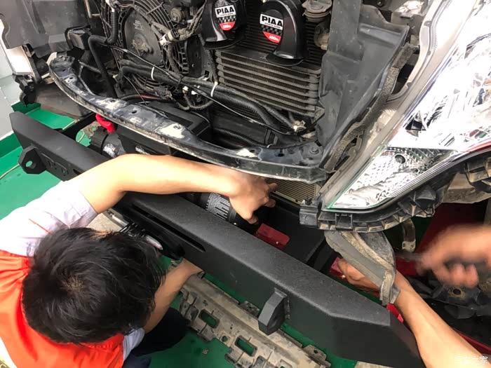 安装这个小前杠,就不需要原厂的铝合金防撞条了,毕竟这玩艺是钢铁的,比原厂的铝合金防镜梁强太多了,缺点就是比原厂的要重一些。