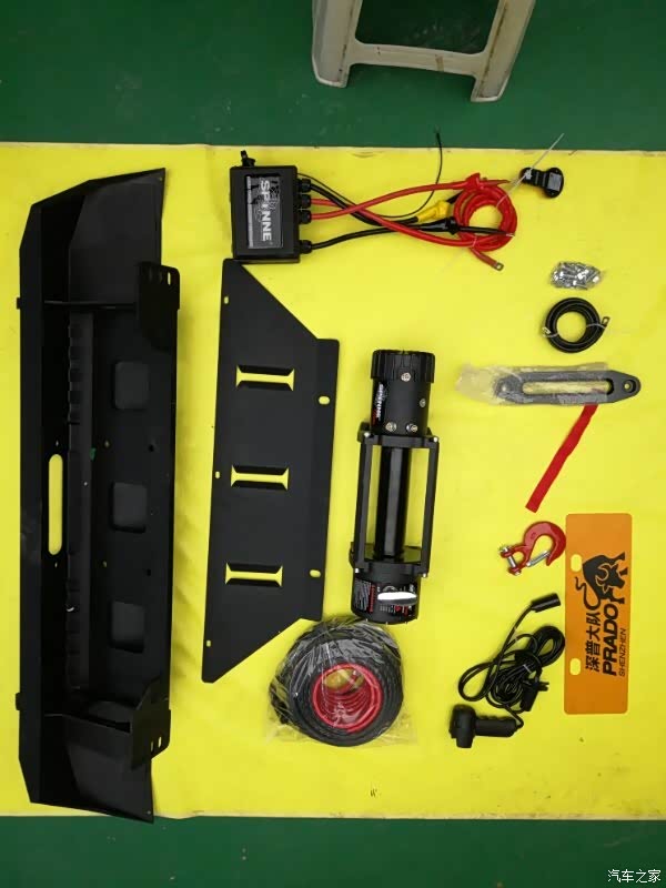普拉多从LC150开始,不知道设计师是不是脑子进水了,前杠下巴使用了车身一样的车漆塑料,而且位置又低,所以去轻度越野也总擦坏前杠下巴,我曾经试过买了几块防擦胶,用大片的3M胶贴上,但也总解决不了,后来见别人安装了这个小前杠,这玩艺真好,一下解决了问题,而且这还是一个内藏式绞盘支架,先上最终效果图