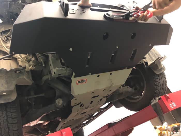 这个小前杠带有水箱护板,大家终于知道为什么ARB的护板不如国产护板那样前面少了一截吧,原来是要配合水箱护板才完美的,这样子就能全部护住了。装了ARB护板,只相当于穿了丁字裤,咱们还是得穿上大裤头才行。