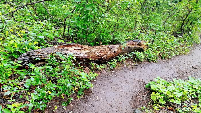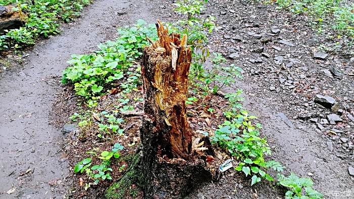倒下的大树依然冒出新绿,自然界中大树展示着顽强的生命力。
