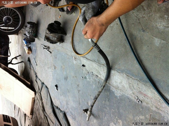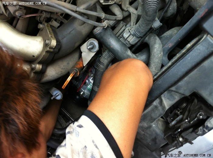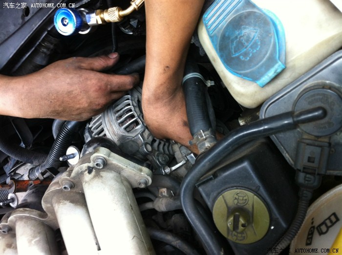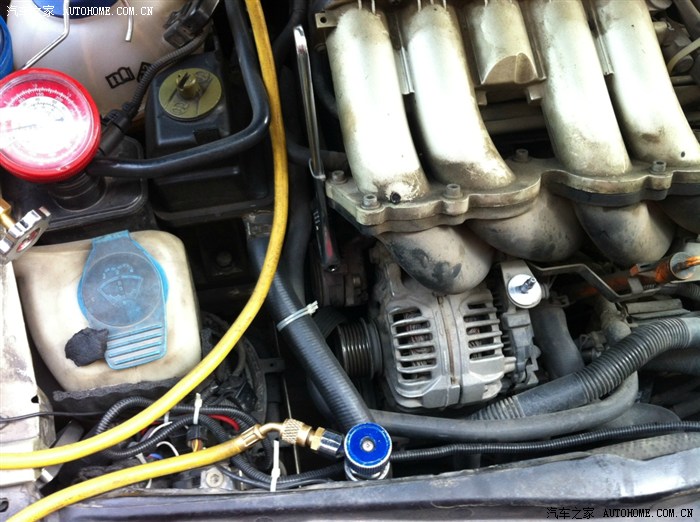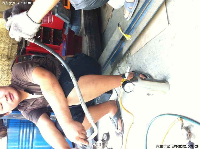 师傅打开发动机盖检查问题,还是和我以前发的贴子一样,高压低压都高,说压缩机高低压串气,有问题,管道要清洗,我说那就换掉吧,谈好价格,拆!